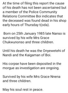 “Presently, the Commissioner of Police has ordered an autopsy to determine the cause of the death. Investigation is ongoing,” he added.