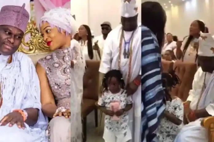 Surprisingly, Queen Naomi and their son, Prince Tadenikawo, and other wives of the monarch were present at the event. In one of the clips, the Ooni was captured talking to Naomi as she held on to their son.