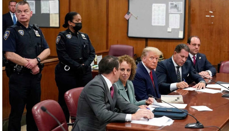 First photo of Donald Trump in the courtroom in Manhattan for his arraignment. (AP/Seth Wenig) pic.twitter.com/RcI4W81ry6