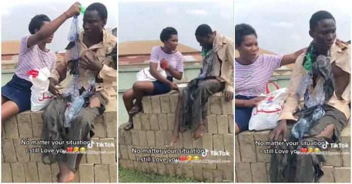The clip shared on TikTok showed the lady appearing on the scene with food for her mentally challenged boyfriend.